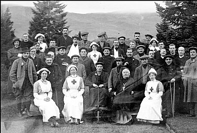 We also looked at the Red Cross Auxiliary (VAD) Hospital which was opened at the Abbey during World War 1 and the Heritage Group have again discovered quite a lot of information locally although no-one could identify anyone from the photograph below which Jim had received from Jamie at the Inverness Courier who had been sent it by a member of the public looking for information.