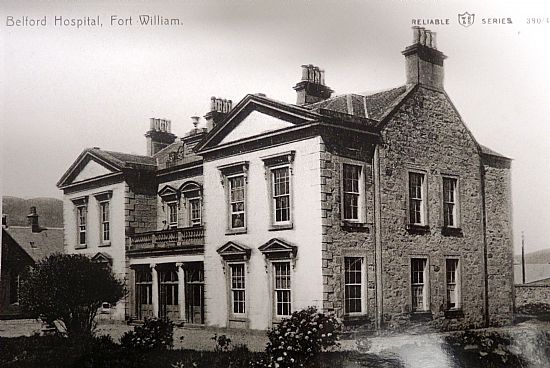Until the 20th century, the rugged mountain terrain of the Lochaber area, combined with the subsistence economy of many of its inhabitants, ensured that access to medical care was often problematic (more details here). However, the generosity of local solicitor Andrew Belford saw the Belford Hospital (above) established in 1865 at Fort William. It was a substantial building which included fever wards and a commitment to admit maternity cases (many hospitals did not have this then). The only other general hospital in the area was the small one at Glengarry which acted only as a base for the district nurse. The very small St Joseph’s Hospital in Fort Augusts seems to have mainly catered for railway workers around 1900 and closed soon after.